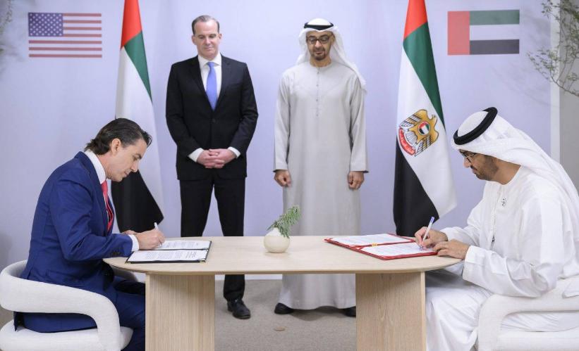 BƏƏ-də keçirilən Əbu-Dabi Beynəlxalq Neft Sərgisi və Konfransı (ADIPEC 2022) çərçivəsində BƏƏ-nin sənaye və qabaqcıl texnologiyalar naziri Sultan əl-Cabir və ABŞ-ın beynəlxalq enerji məsələləri üzrə xüsusi koordinatoru Amos Hoçsteyn arasında təmiz (yaşıl) enerji layihələrinə $100 milyardlıq sərmayə qoymaqla bağlı strateji tərəfdaşlıq sazişi imzalanıb.
