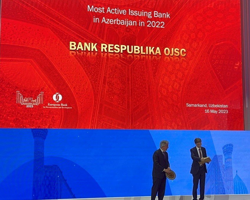 Bank Respublika – Avropa Yenidənqurma və İnkişaf Bankının (EBRD) tərəfindən Ticarətə Yardım Proqramı (The Trade Facilitation Programme, TFP) çərçivəsində 2022-ci il üzrə ticarətin maliyyələşdirilməsi sahəsində “Azərbaycanda ən fəal emitent-bank” adına layiq görülüb.