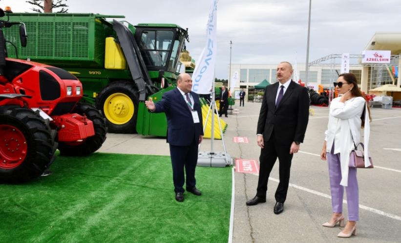 Dövlətimizin başçısı və birinci xanım sərgidə “Grow Group Azərbaycan”, “Maschio Gaspardo”, “New Holland”, “Rostselmaş”, “MySilo”, “Rauch Landmashchinen”, “SwissGrow”, “AfiMilk”, “Gowan”, “Can-Pa” şirkətlərinin, Çexiyanın, İtaliyanın, Belarusun, Gürcüstanın, ABŞ-ın və Niderlandın stendləri ilə tanış oldular. Stendlərdə ən müasir kənd təsərrüfatı texnikaları, əkin-biçin aqreqatları və kənd təsərrüfatı məhsulları təqdim olunur.