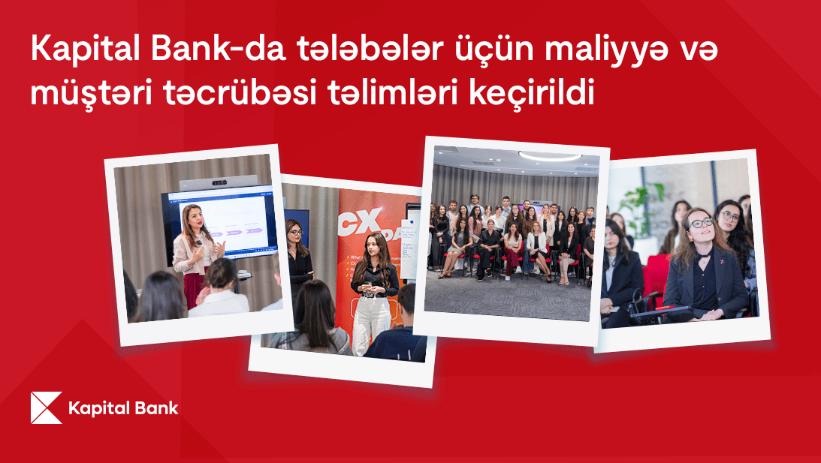 Ölkənin birinci bankı Kapital Bank gənclərin, xüsusən də tələbələrin yeni təcrübələr qazanmasına və şəxsi inkişafına dəstək olmağa davam edir. Bu dəfə bank daxilində dörd ali məktəbin tələbələri üçün xüsusi təlimlər təşkil edilib. Gənclərin maliyyə və müştəri təcrübəsi sahələrində biliklərinin artırılması məqsədi ilə həyata keçirilən layihə ötən həftə baş tutub.
