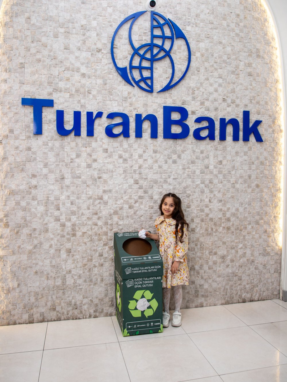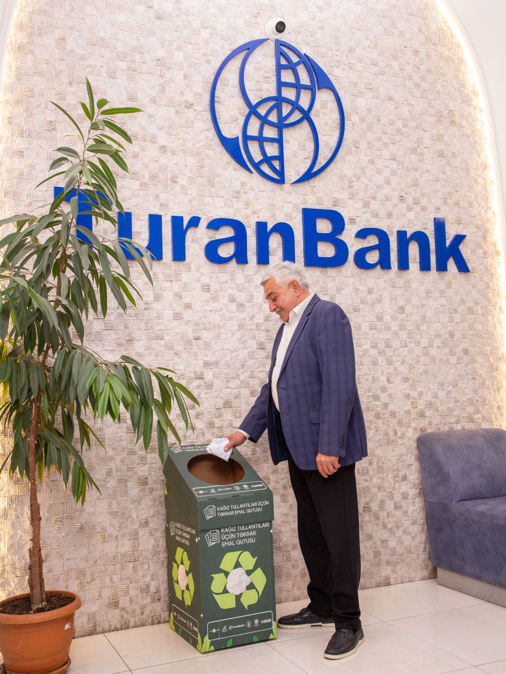 Belə ki, ekoloji layihə çərçivəsində TuranBank-a məxsus satış nöqtələrində və Baş ofisində ətraf mühitin mühafizəsi, kağız israfının qarşısının alınması və təkrar emal prosesinin təşviqi məqsədilə kağız tullantılarının toplanması üçün xüsusi təkrar emal qutuları yerləşdirilib. Layihənin əsas məqsədi ağacların qorunmasına, ekoloji tarazlığın saxlanılmasına və əhalidə ekoloji məsuliyyət hissinin artırılmasına töhfə verməkdir.