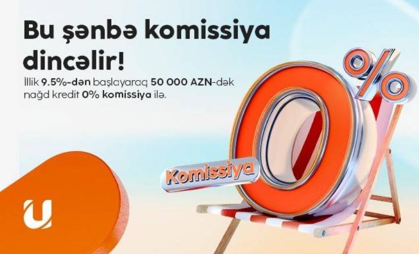 Unibank iyul ayı üçün sonuncu “Komissiyasız şənbə”aksiyasını elan edir. Cəmi 1 gün- iyulun 26-da “Unibank”dan nağd kredit rəsmiləşdirən hər kəs krediti 0 % komissiya ilə əldə edəcək. Kampaniya çərçivəsində 50 000 manatadək kredit illik cəmi 9.5 %-dən başlayaraq və komissiyasız təklif edilir.