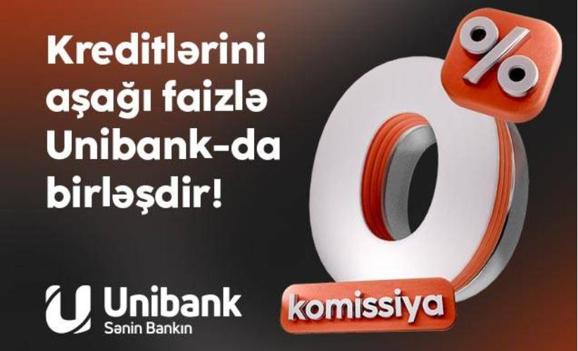 ®Əgər bir neçə bankdakı kreditlərinizi 0 % komissiya və daha aşağı faizlə bir ünvanda birləşdirmək istəyirsinizsə, “Unibank”ın yeni kampaniyası sizin üçündür. Oktyabrın sonunadək digər banklardakı kreditlərini “Unibank”a gətirən müştərilər, kreditini komissiyasız rəsmiləşdirməklə yanaşı, daha aşağı faiz və ayda cəmi bir dəfə ödəniş etmək imkanı qazanırlar. İllik 9,5 faizdən başlayan nağd kreditlər 60 ayadək müddətə verilir. Kreditin maksimal məbləği 50 000 manatdır.