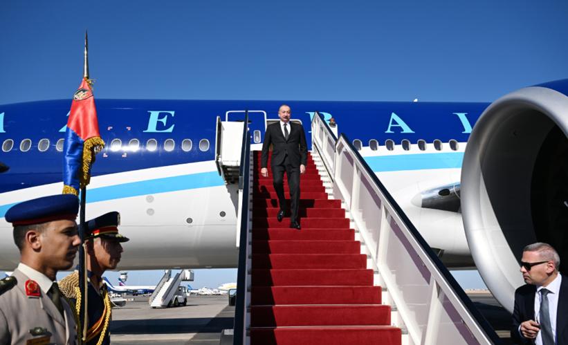 Bildirilib ki, Şarm Əl-Şeyx şəhərinin beynəlxalq aeroportunda dövlət başçısının şərəfinə fəxri qarovul dəstəsi düzülüb.