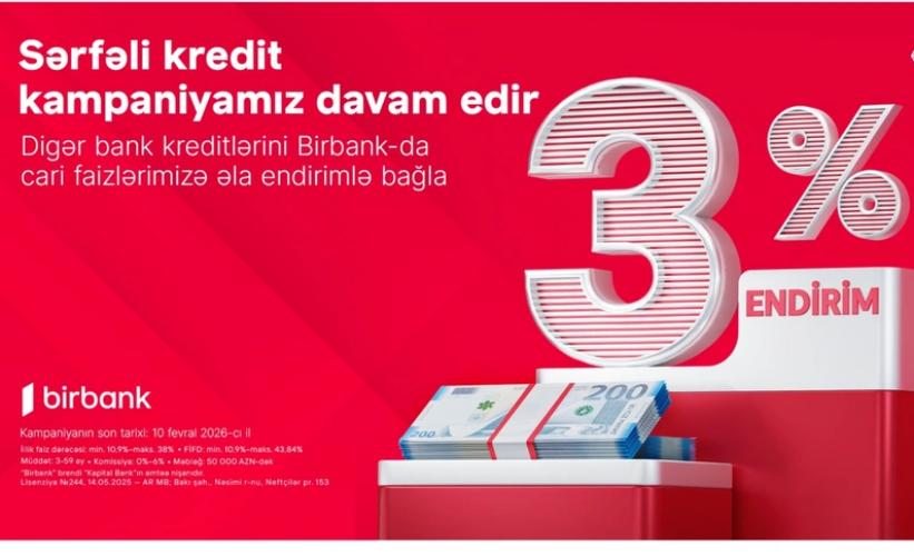 Kreditini "Birbank"a gətirənlər 3 % endirim qazanır - kampaniya davam edir