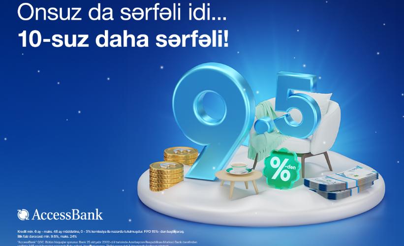 Müştərilərinə daha sərfəli və əlçatan maliyyə imkanları təqdim etməyə davam edən AccessBank, 40 000 manatadək nağd kredit üzrə illik minimum faiz dərəcəsini artıq 10% əvəzinə, illik 9.5%-dən başlayan faiz dərəcəsi ilə təklif edir .