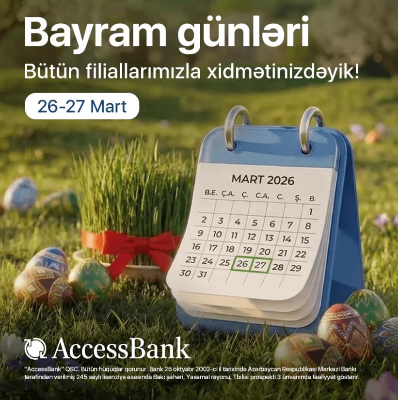 Qeyd olunan tarixlərdə müştərilər AccessBank filiallarına müraciət edərək bank məhsul və xidmətlərindən rahat şəkildə yararlana biləcəklər.